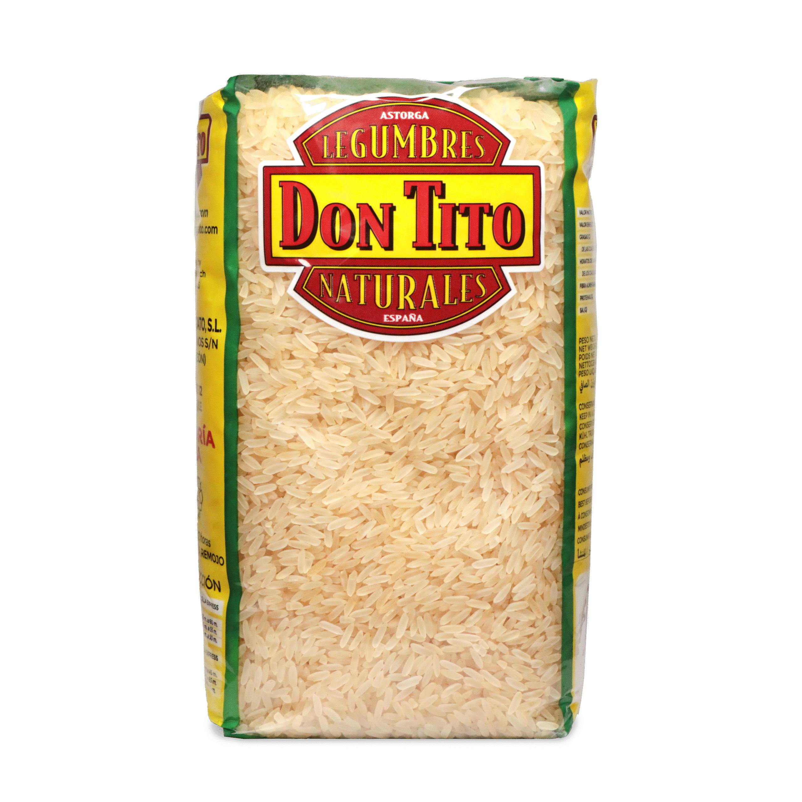 El arroz vaporizado Don Tito se elabora con las mejores variedades de este sabroso cereal sometiéndolo a un proceso que le confiere unas cualidades especiales a un grano que conserva todo su sabor y que nunca se pasa. Envase: bolsa 1 Kg.