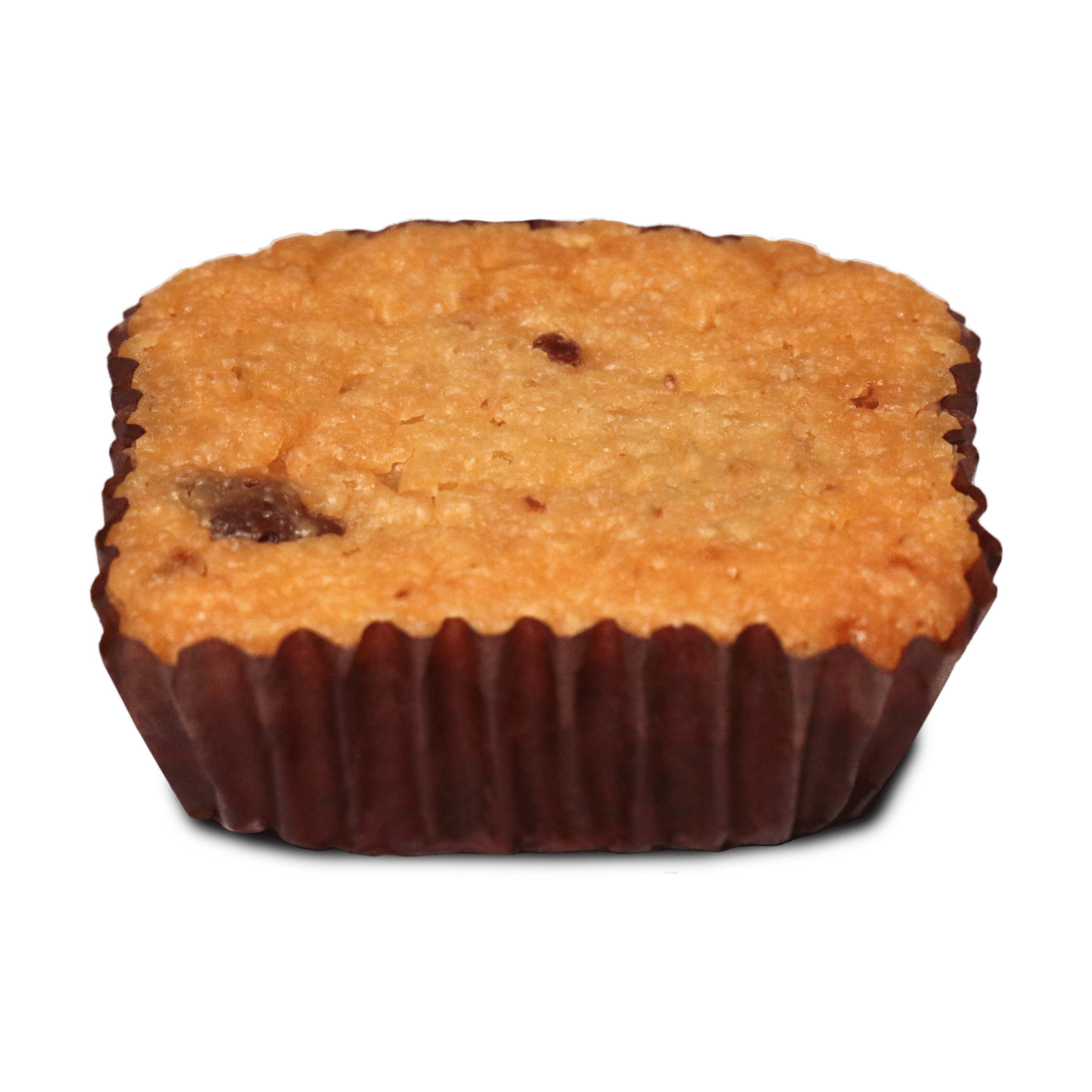 Blondies elaboradas por Codán, Madrid. Envase: caja de 120 unidades de 22 g envasadas individualmente.